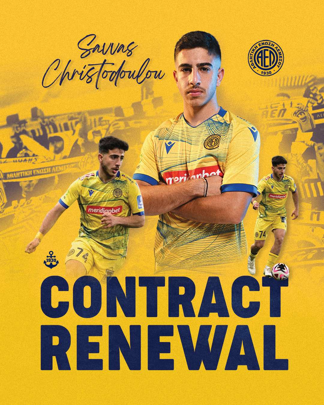 Το Διοικητικό Συμβούλιο της ΑΕΛ ανακοινώνει την επέκταση της συνεργασίας με τον νεαρό ποδοσφαιριστή Σάββα Χριστοδούλου για ακόμη δύο χρόνια.