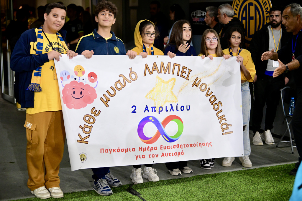 Ένα μήνυμα αγάπης, αποδοχής και κατανόησης, που προβλήθηκε σε οθόνες του γηπέδου, ανακοινώθηκε από τον εκφωνητή και μεταδόθηκε ζωντανά κατά την είσοδο των ποδοσφαιριστών, με τα παιδιά να συμμετέχουν ενεργά κρατώντας το πανό.