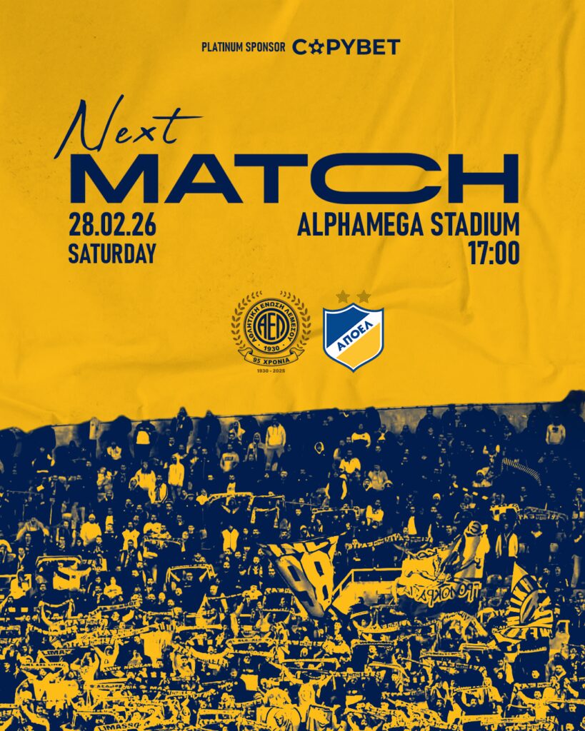 Η Αθλητική Ένωση Λεμεσού ανακοινώνει τις λεπτομέρειες της προπώλησης των εισιτηρίων για τον αγώνα ΑΕΛ – ΑΠΟΕΛ που είναι προγραμματισμένος για το Σάββατο 28/02/2026 στις 17:00 στο «Στάδιο ΑΛΦΑΜΕΓΑ», στο πλαίσιο της 24ης αγωνιστικής της Cyprus League 2025/26.