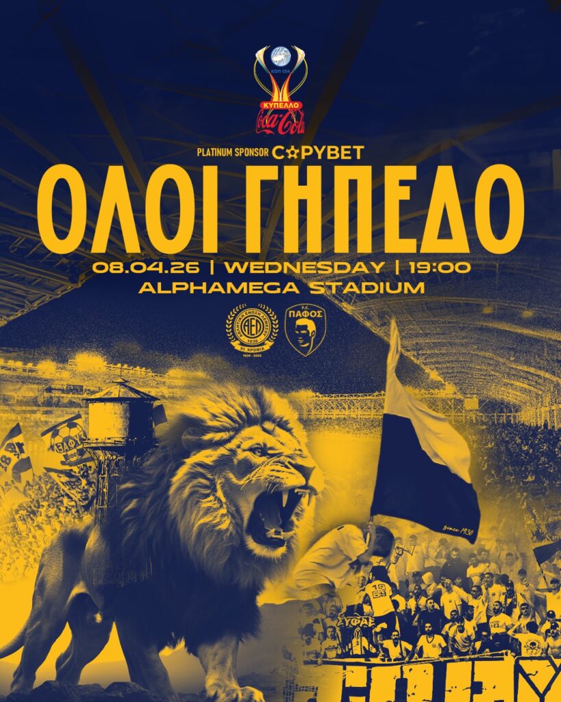 Η Αθλητική Ένωση Λεμεσού ανακοινώνει τις λεπτομέρειες της προπώλησης των εισιτηρίων για τον αγώνα ΑΕΛ – ΠΑΦΟΣ FC που είναι προγραμματισμένος για την Τετάρτη 08/04/2026 στις 19:00 στο «Στάδιο ΑΛΦΑΜΕΓΑ», στο πλαίσιο της ημιτελικής φάσης του Κυπέλλου Coca-Cola 2025/26.