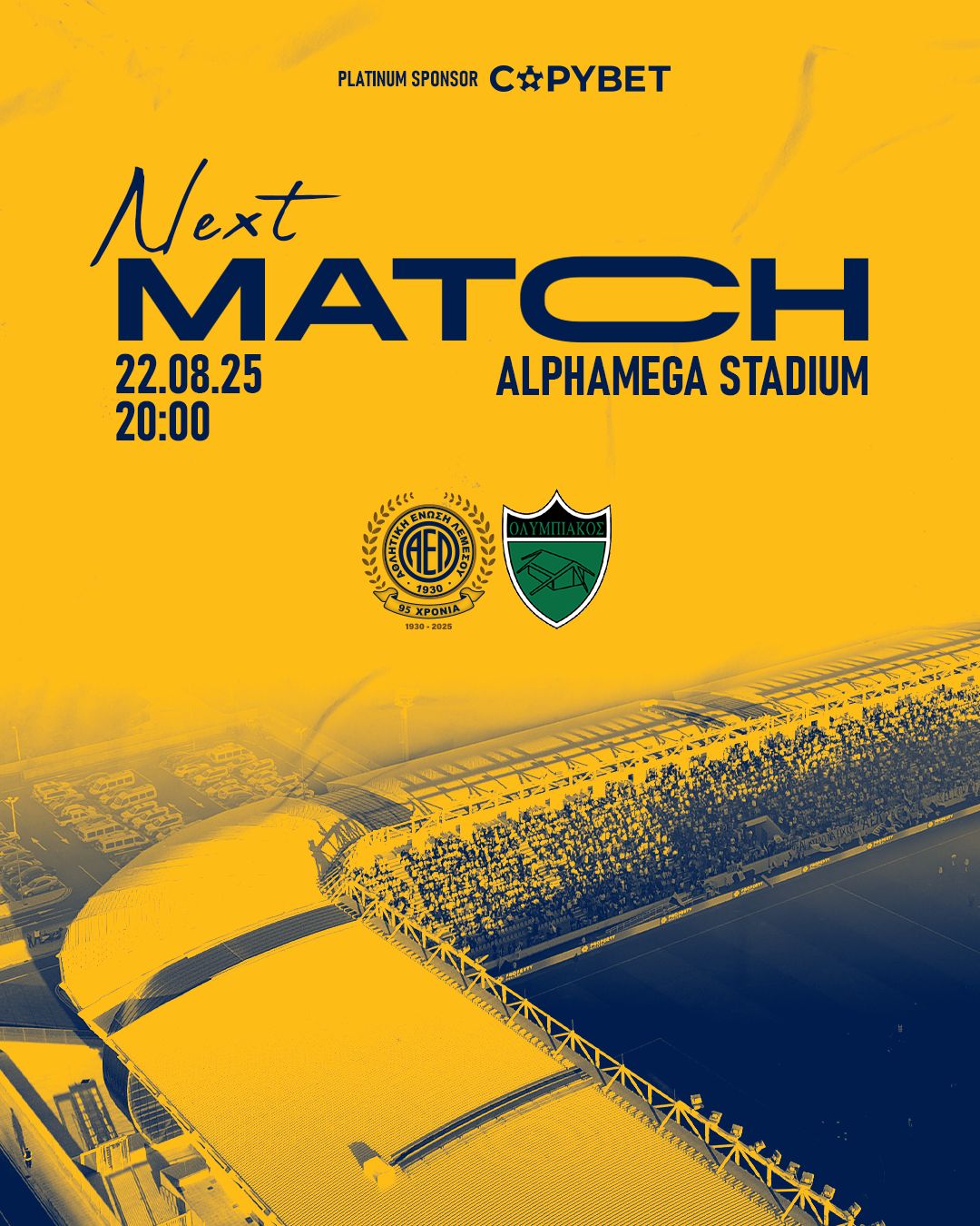 Το Διοικητικό Συμβούλιο της ΑΕΛ ανακοινώνει την έναρξη της προπώλησης των εισιτηρίων για τον αγώνα ΑΕΛ – Ολυμπιακός που είναι προγραμματισμένος για την Παρασκευή 22/08/2025 στις 20:00 στο «Στάδιο ΑΛΦΑΜΕΓΑ», για την 1η αγωνιστική της Cyprus League 2025/26.