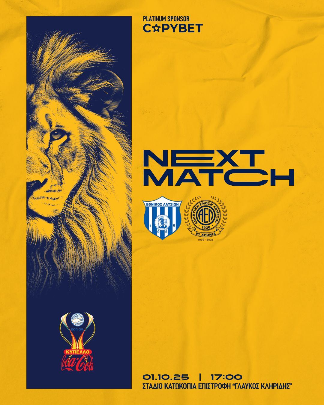 Η Αθλητική Ένωση Λεμεσού ανακοινώνει τις λεπτομέρειες της προπώλησης των εισιτηρίων για τον αγώνα Κυπέλλου με τον Εθνικό Λατσιών, που είναι προγραμματισμένος για την Τετάρτη 01/10/2025 στις 17:00 στο Στάδιο “Κατωκοπιά Επιστροφή – Γλαύκος Κληρίδης”, στο πλαίσιο της Α’ φάσης του Κυπέλλου Coca – Cola Α’ και Β’ Κατηγορίας 2025/26.