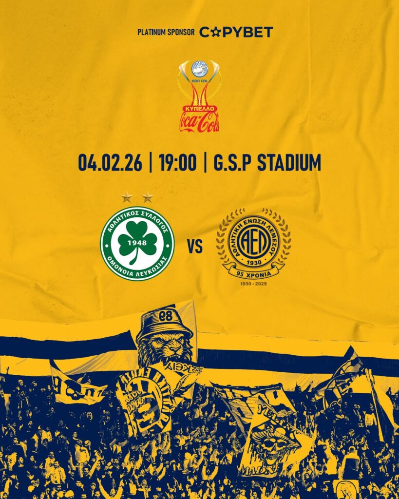 Η Αθλητική Ένωση Λεμεσού ανακοινώνει τις λεπτομέρειες της προπώλησης των εισιτηρίων για τον εκτός έδρας αγώνα της προημιτελικής φάσης του Κυπέλλου Coca-Cola με αντίπαλο την Ομόνοια Λευκωσίας, που είναι προγραμματισμένος για την Τετάρτη 04/02/2026 στις 19:00 στο Στάδιο ΓΣΠ.